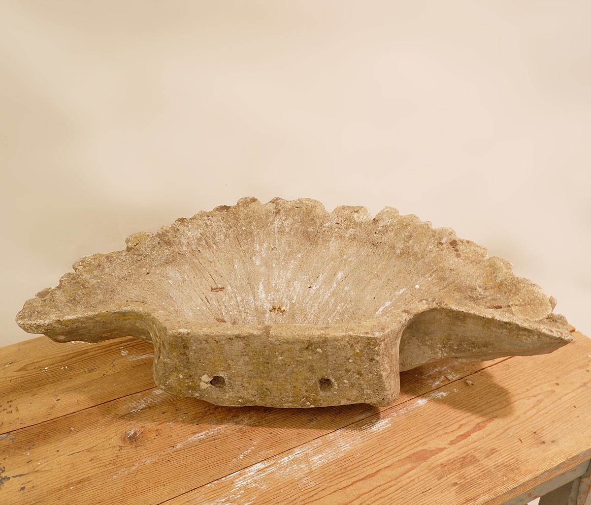 Antique ciment Shell Bird Bath