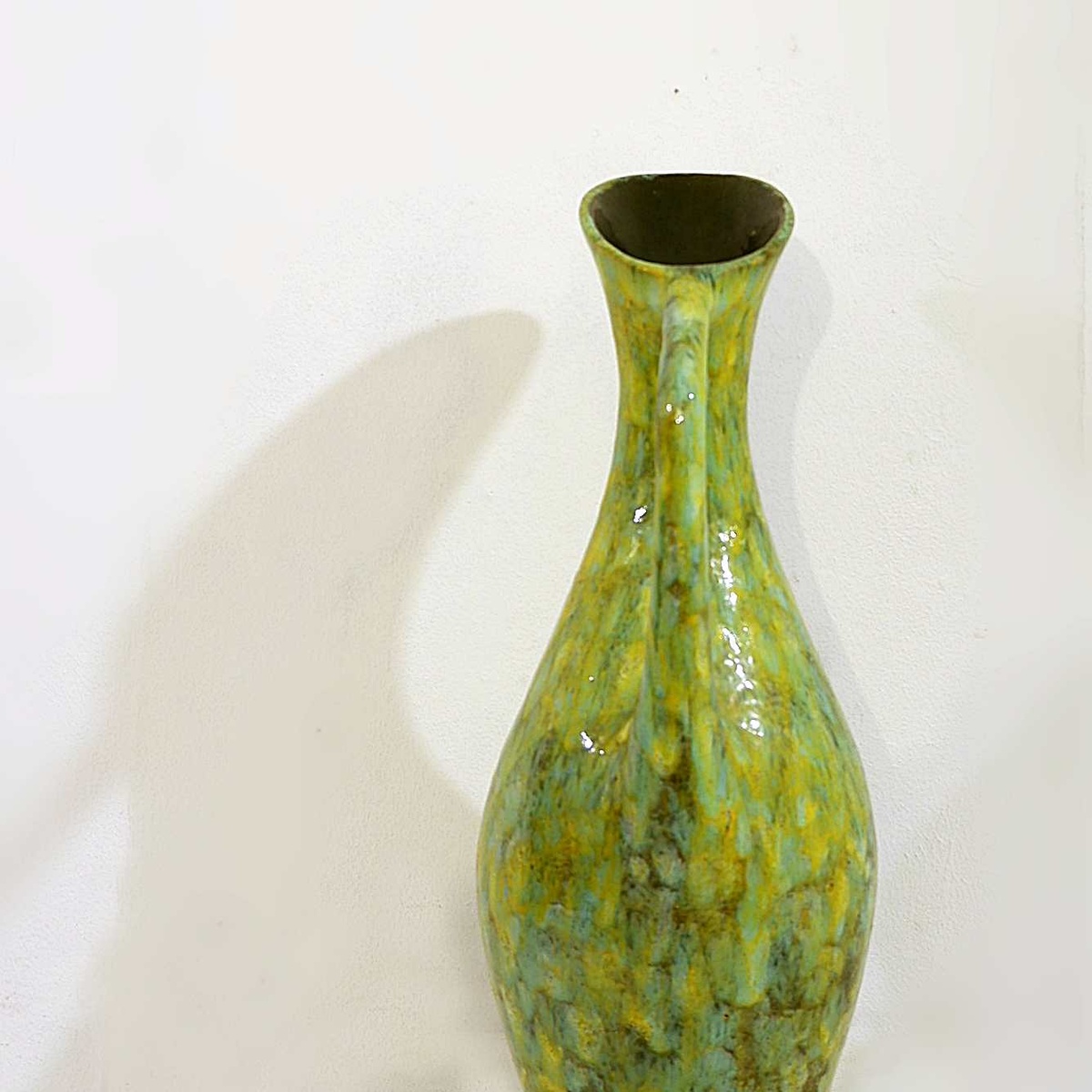Mid century large green ceramic spout jug - H:54cm