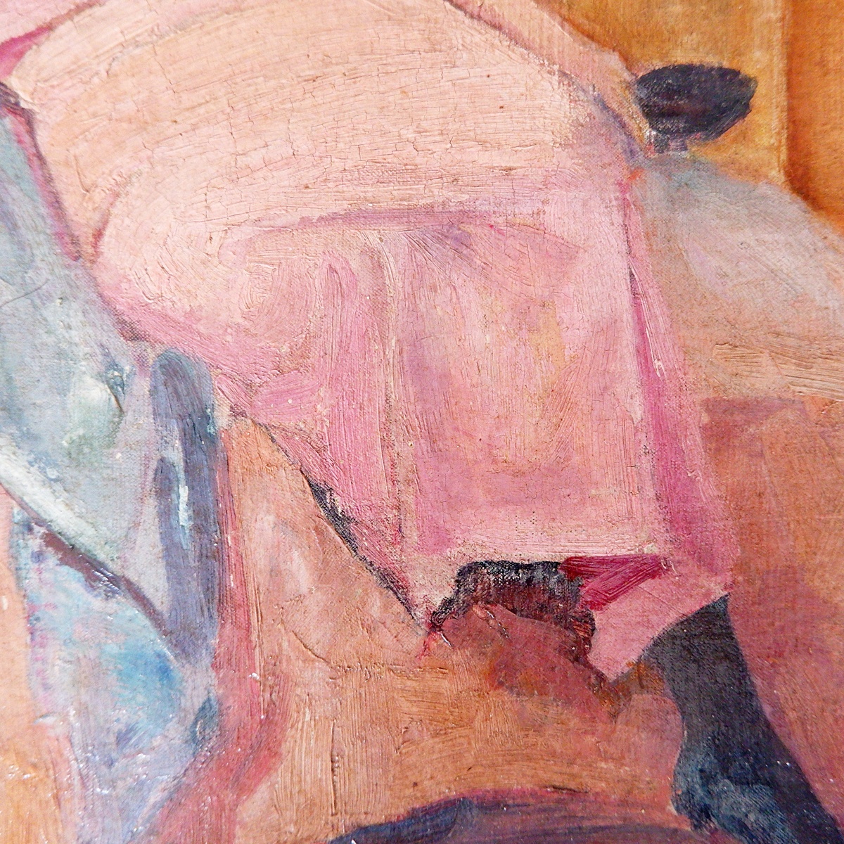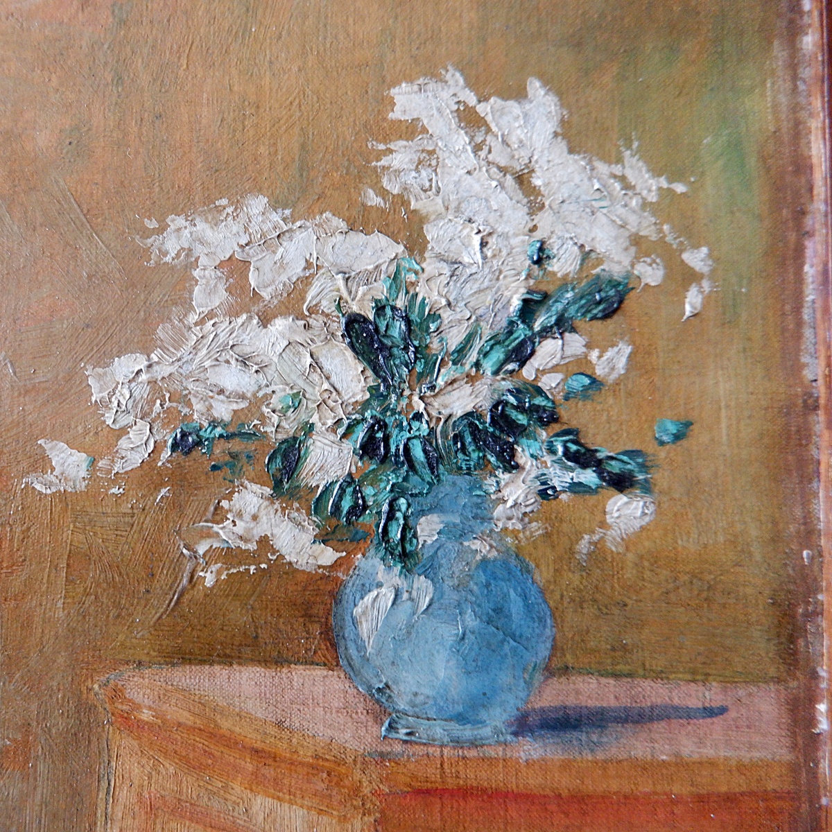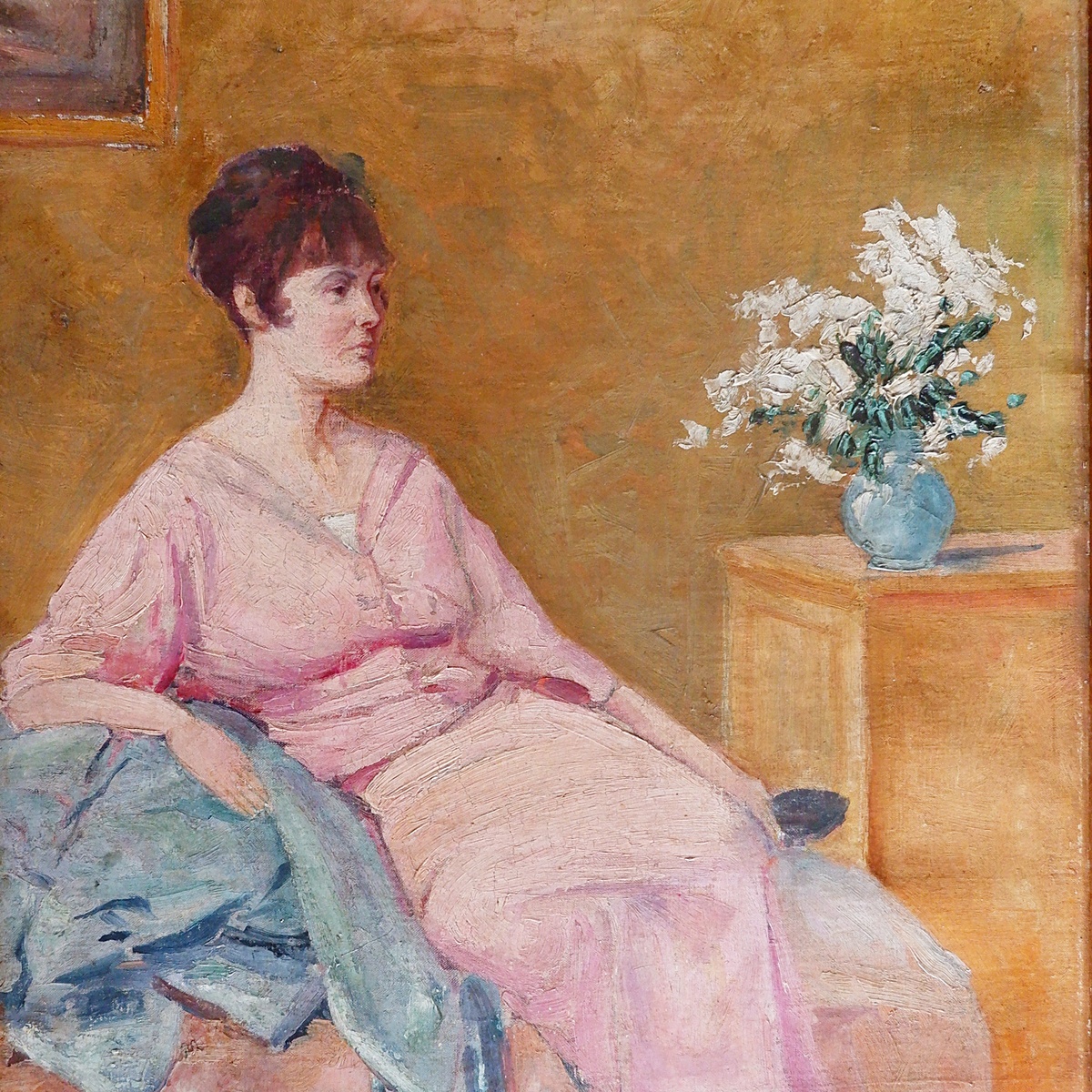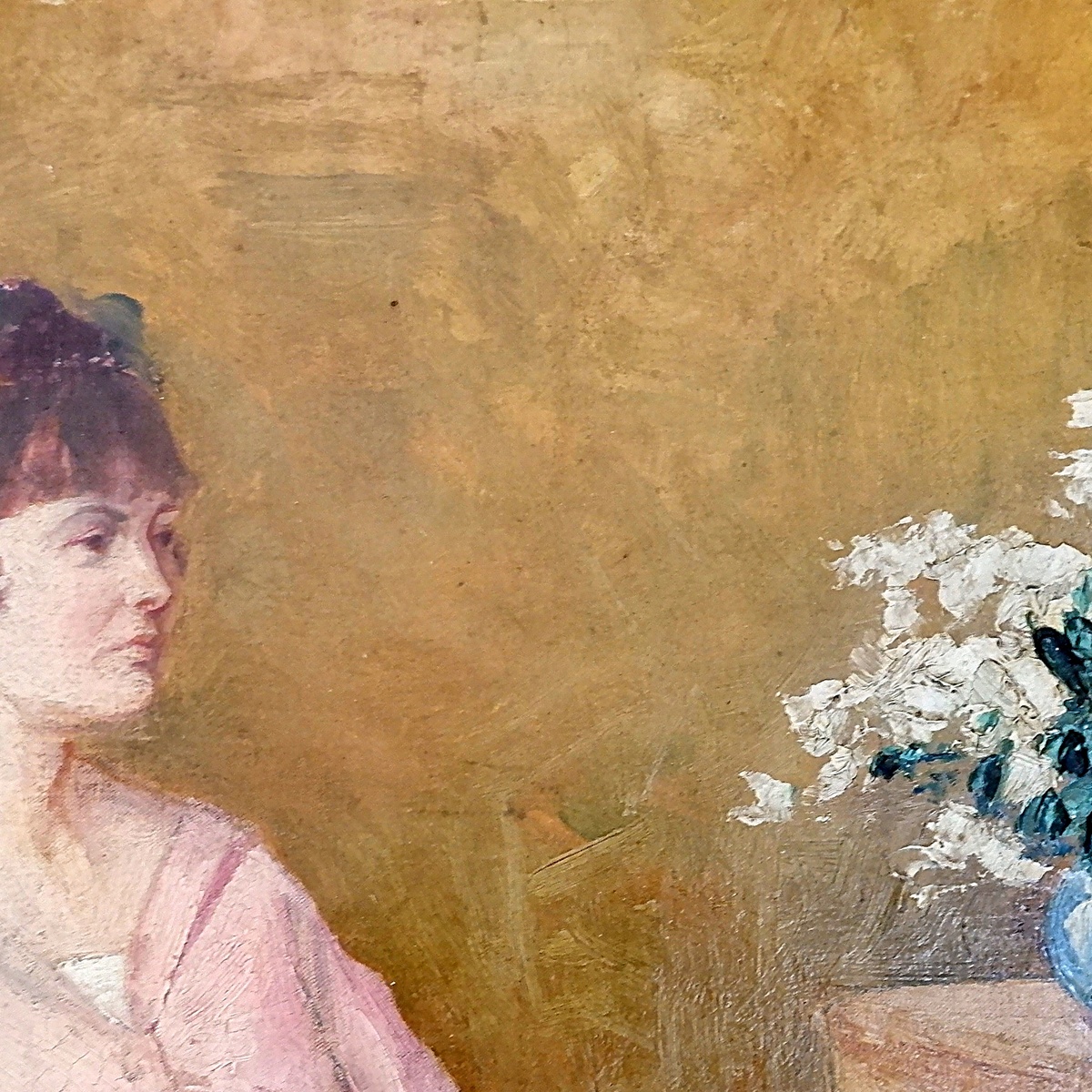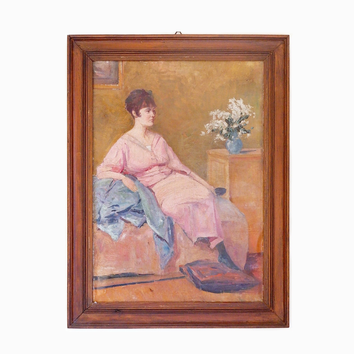 Oil on canvas - unsigned - represents a Woman Seated beside a Vase of Flowers