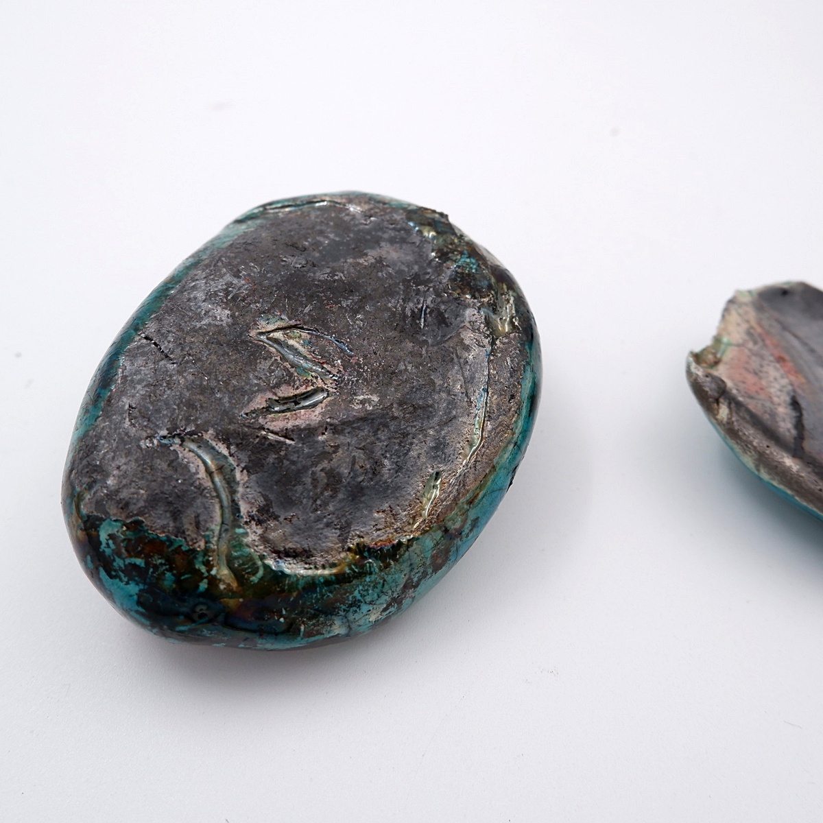 Set of decorative ceramics turquoise "Fond d'Atelier" - N.Lebrun - Belgium 1970s