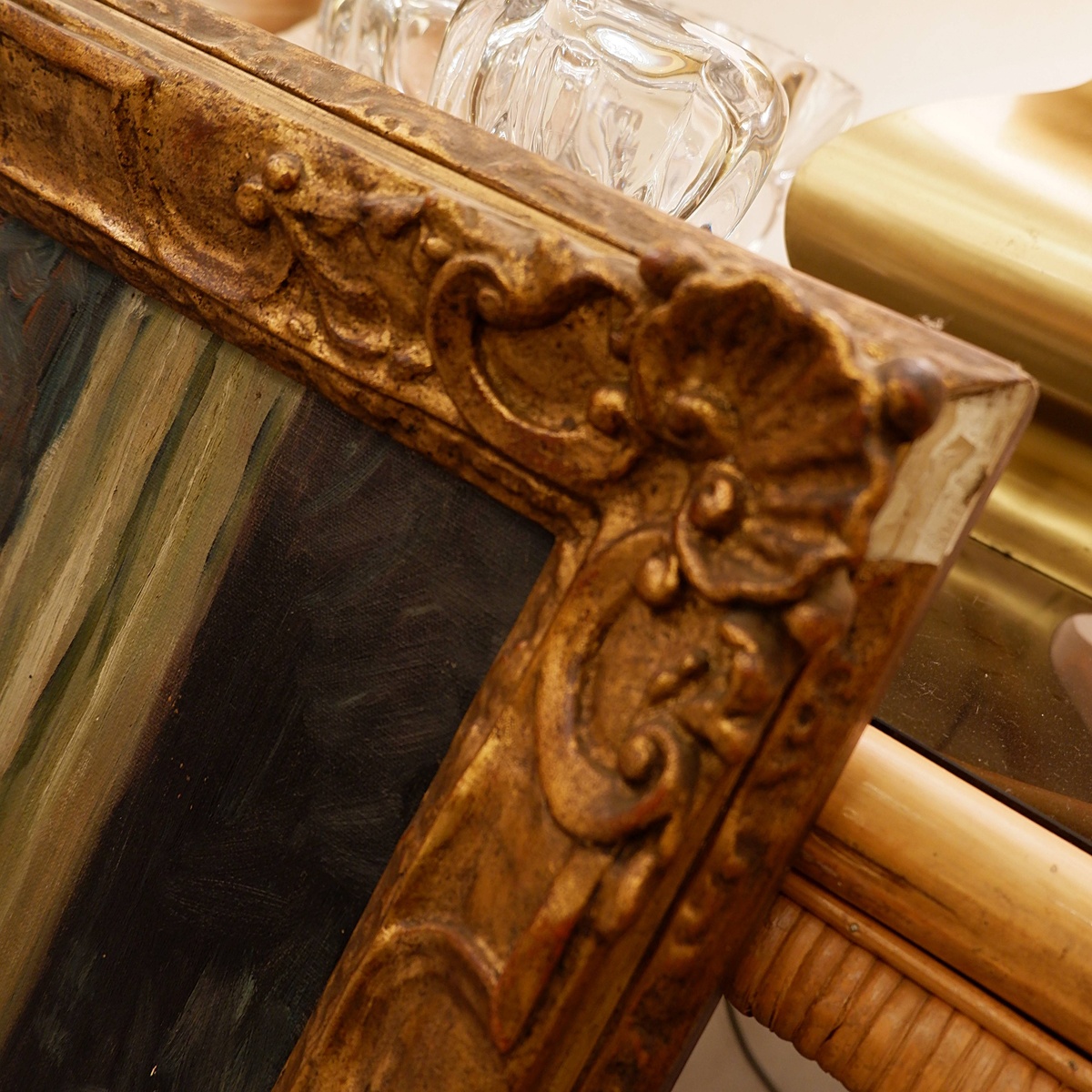 "Flowers in front mirror" painting on canvas 19th - signed