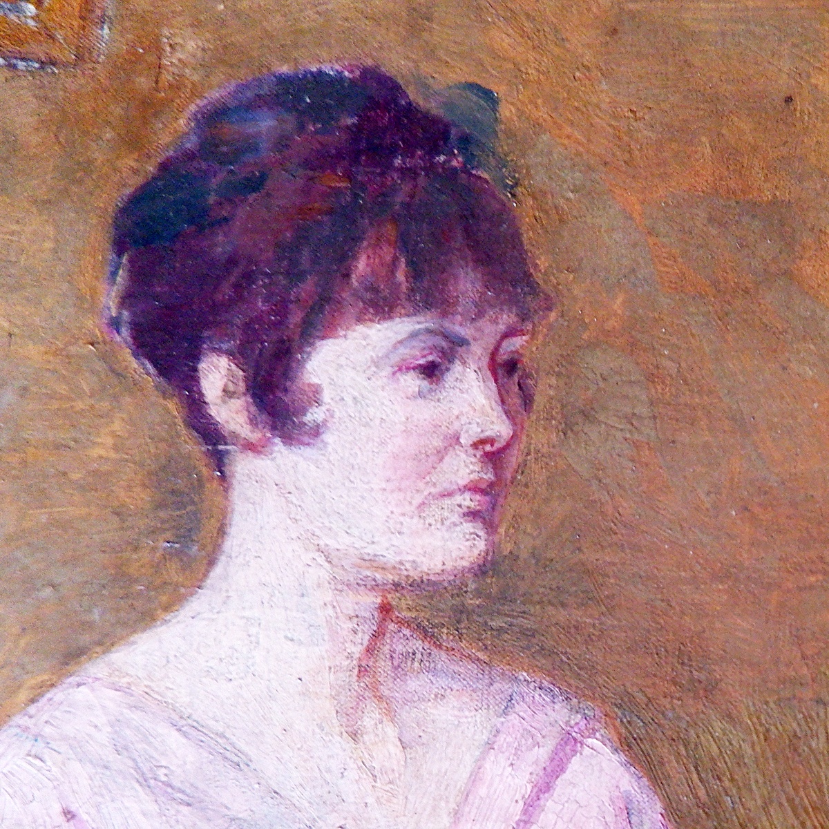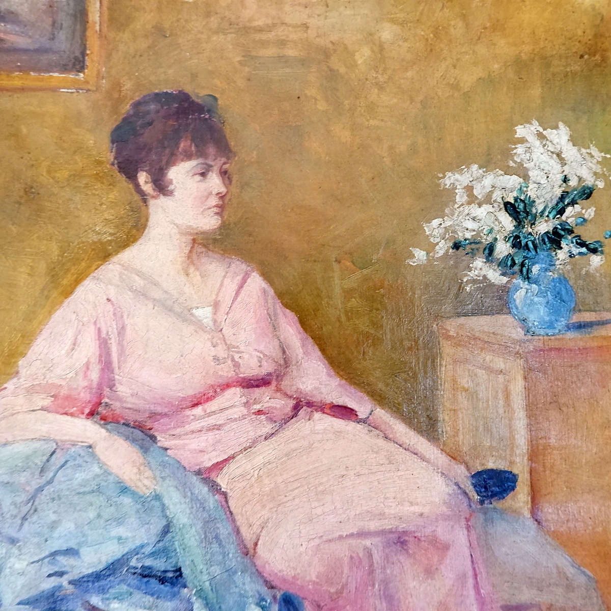 Oil on canvas - unsigned - represents a Woman Seated beside a Vase of Flowers