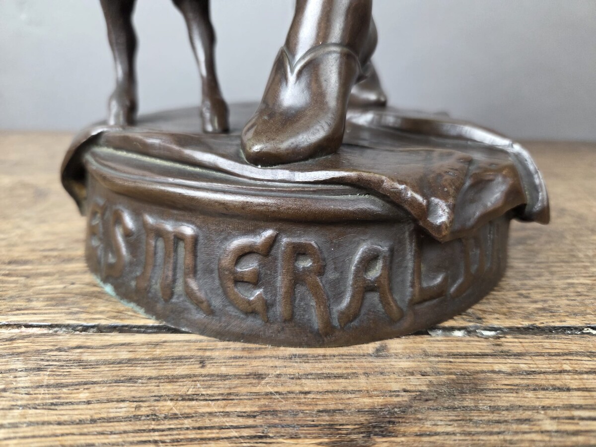 Brown patina bronze by Eugène Marioton, "Esméralda", signed