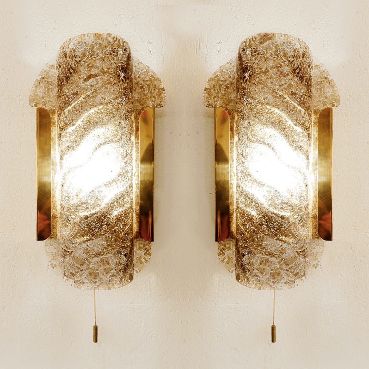 Pairs of Dark Toned Murano Glass Wall Sconces by Kaiser, Germany, 1970s